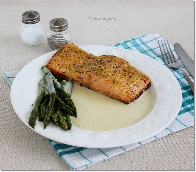 A tengeri halak közül nagyon szeretem a lazacot, így aztán még ünnepi alkalom sem kell hozzá, időről-időre szívesen elkészítem. Mivel az idén nagyon kedvező áron hozzálehet jutni a spárgához, (most pl. 50 dkg/600 Ft volt) így gondoltam a fűszereslazac mellé spárgát tálalok majd.... Persze azért a kettő együtt kevésnek bizonyult volna, így fehérbormártást készítettem, majd azzal tálaltam. A mártás elkészítési igen egyszerű, és pl. sült húsokhoz is remekül illik.